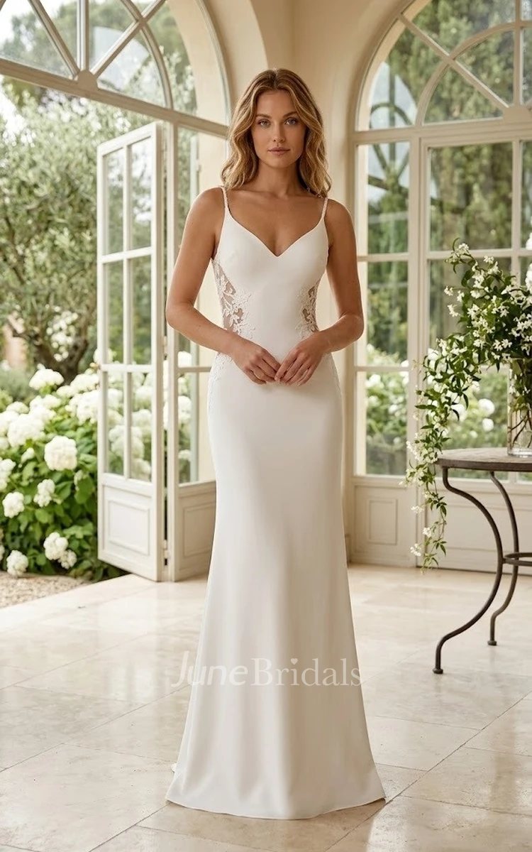 Modern Spaghetti Strap Wedding Dress Mermaid Floral Lace Gown with Illusion Keyhole Back