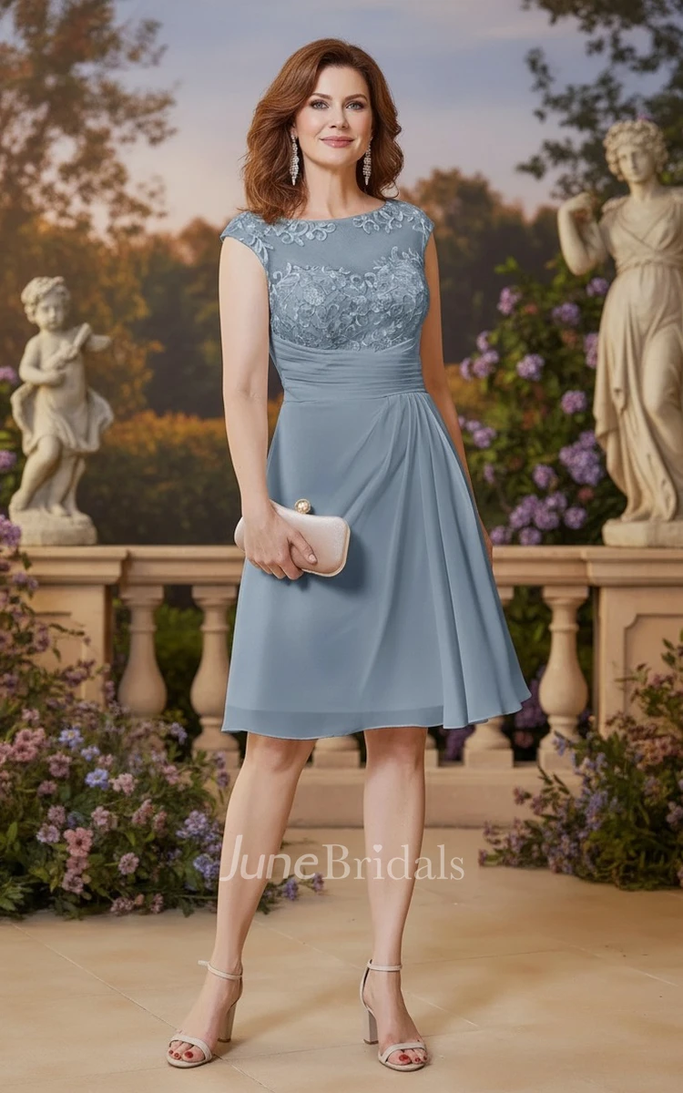 Minimalist Sheath Knee Length Short Half Sleeves Mother of the Bride Dress with Appliqued Shoulder and Ruching
