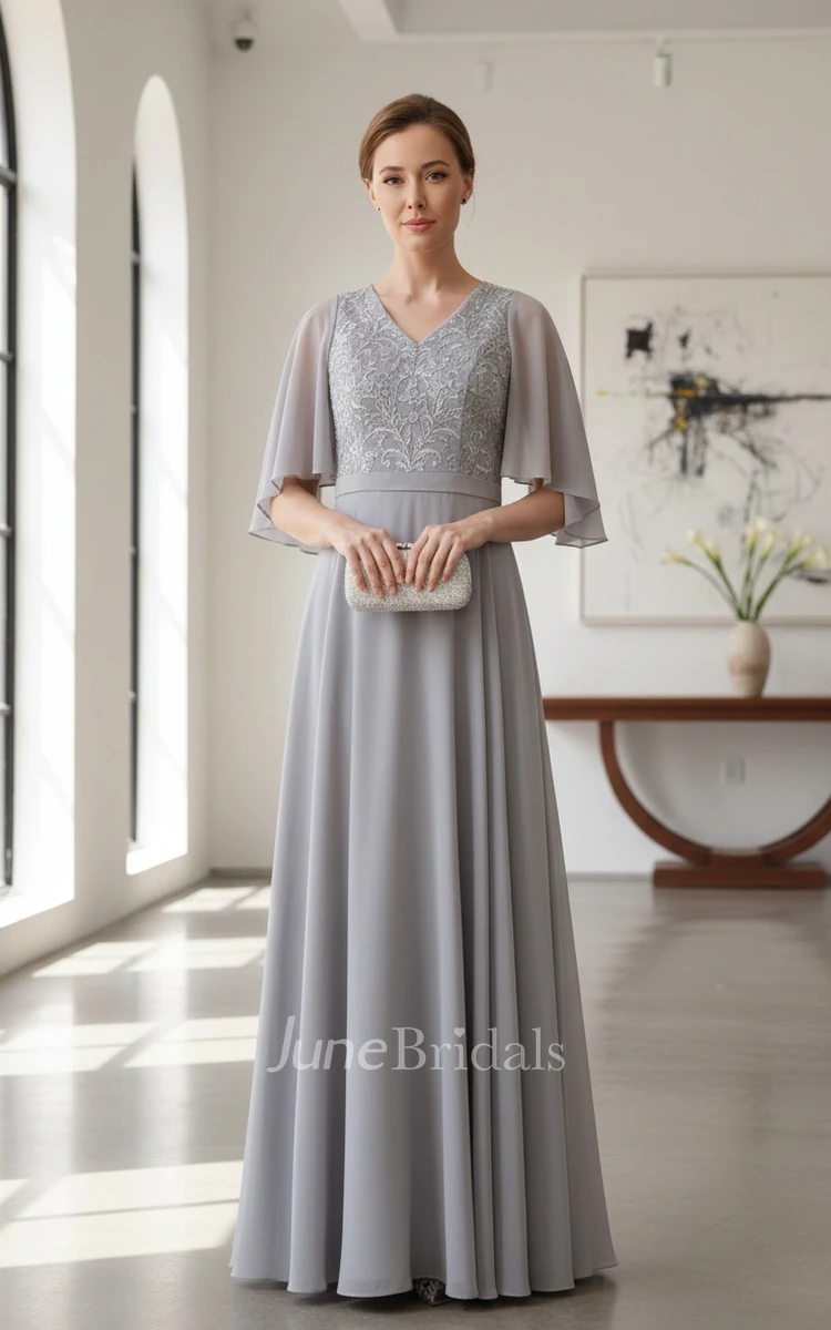 A Line V-neck Chiffon Short Sleeve Formal Mother Dress With Ruffles